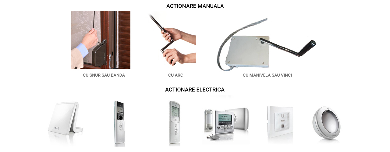 - Actionarea cu arc: se utilizeaza exclusiv in cazul rulourilor cu lamele neperforate si cu sistem antiefractie (preferabil cu yala pe ultima lamela).